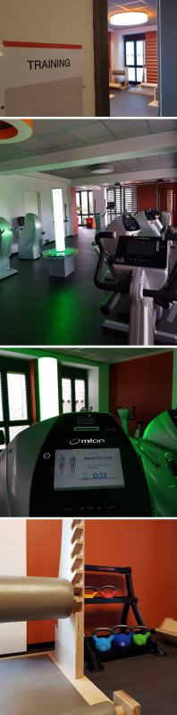 ist eine Kombination aus Kraft- und Ausdauergeräten. Sie trainieren alle großen und wichtigen Muskelgruppen Ihres Körpers in Bezug auf Haltung und Gelenkstabilität, sowie die Belastbarkeit und Ausdauer Ihres Herzmuskels. Das Training wird kombiniert mit einem Muskellängentraining an Beweglichkeitsgeräten, die speziell zur gezielten Faszien- und Muskeldehnung von Sportwissenschaftlern entwickelt wurden. |